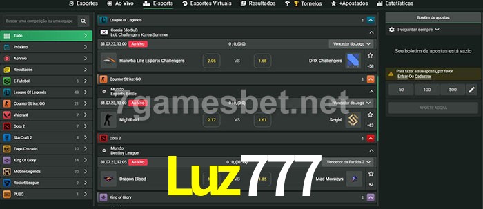 A aposta Luz777 oferece aos jogadores a experiência mais conveniente de apostas em eSports!